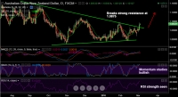 AUD/NZD has been trading a symmetrical triangle pattern and the pair has broken strong resistance at 1.0875 (triangle top). RSI strength seen at 63, with further room to run, momentum studies are bullish. Major...