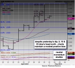 Opened -0.85%, with carry trades under sustained pressure USD strength caution on RBNZs dovish stance Momentum studies, 5, 10 20 dmas peak, but still neutral bias Close below 0.7533, 38.2% of March/April...